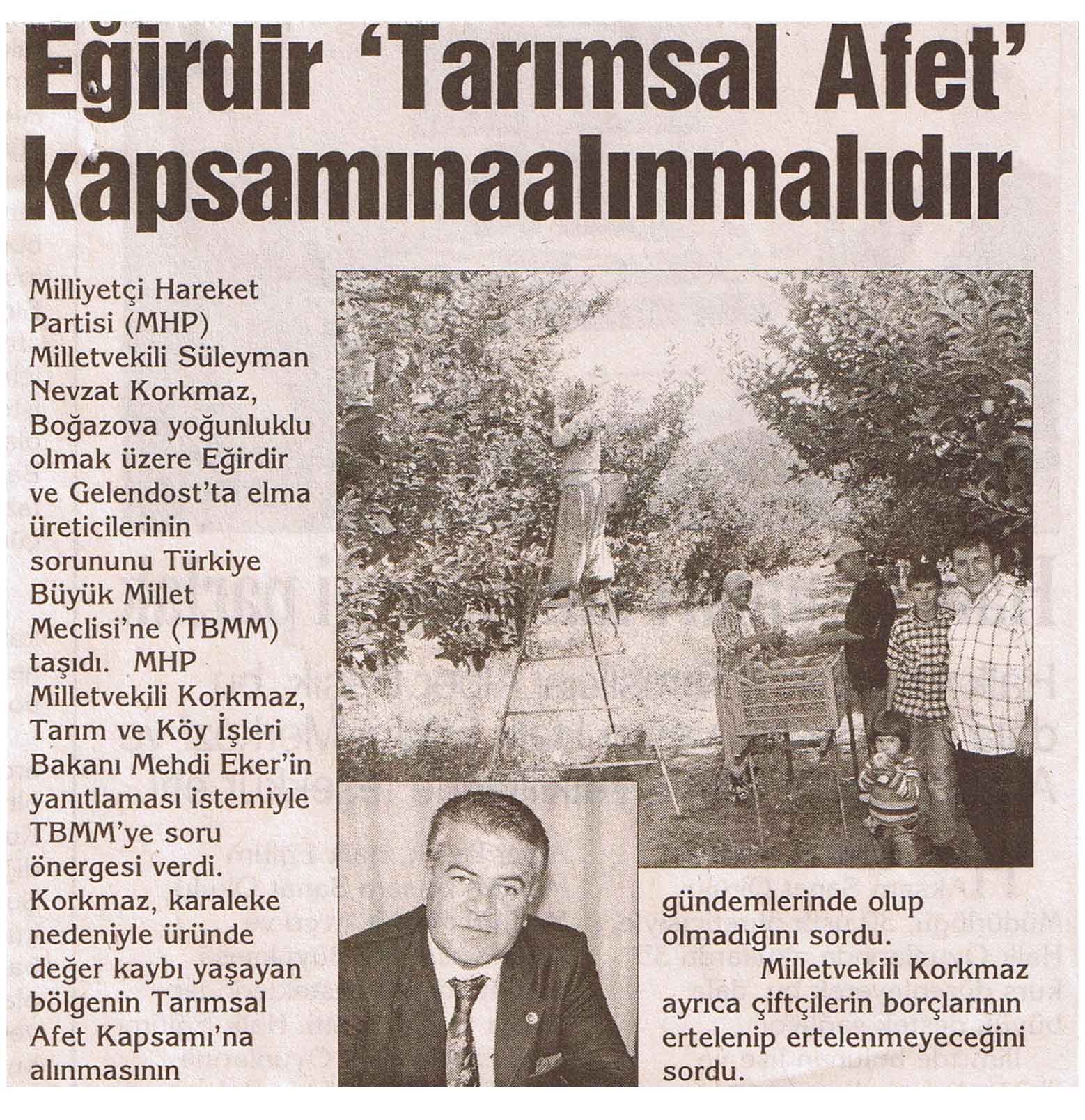 EĞİRDİR ‘TARIMSAL AFET’ KAPSAMINA ALINMALIDIR