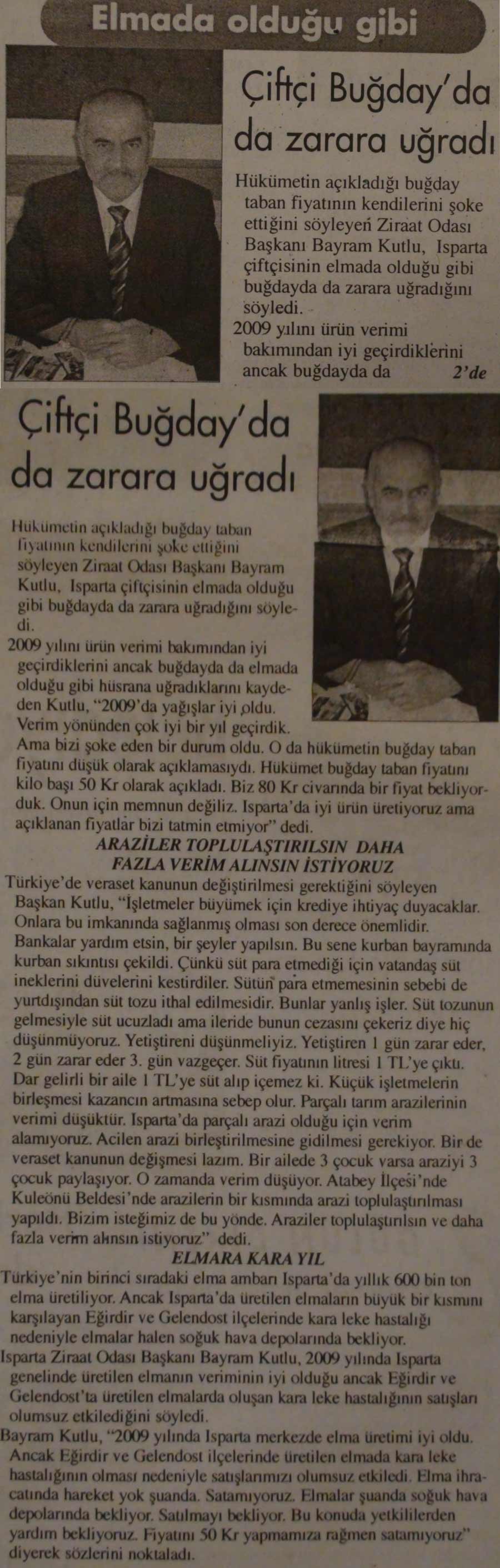 ÇİFTÇİ BUĞDAYDA DA ZARARA UĞRADI