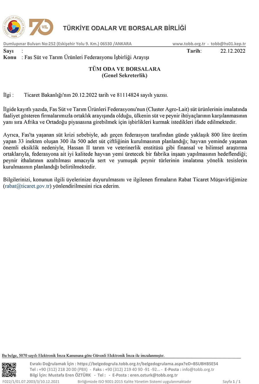 Fas Süt ve Tarım Ürünleri Federasyonu İşbirliği Arayışı