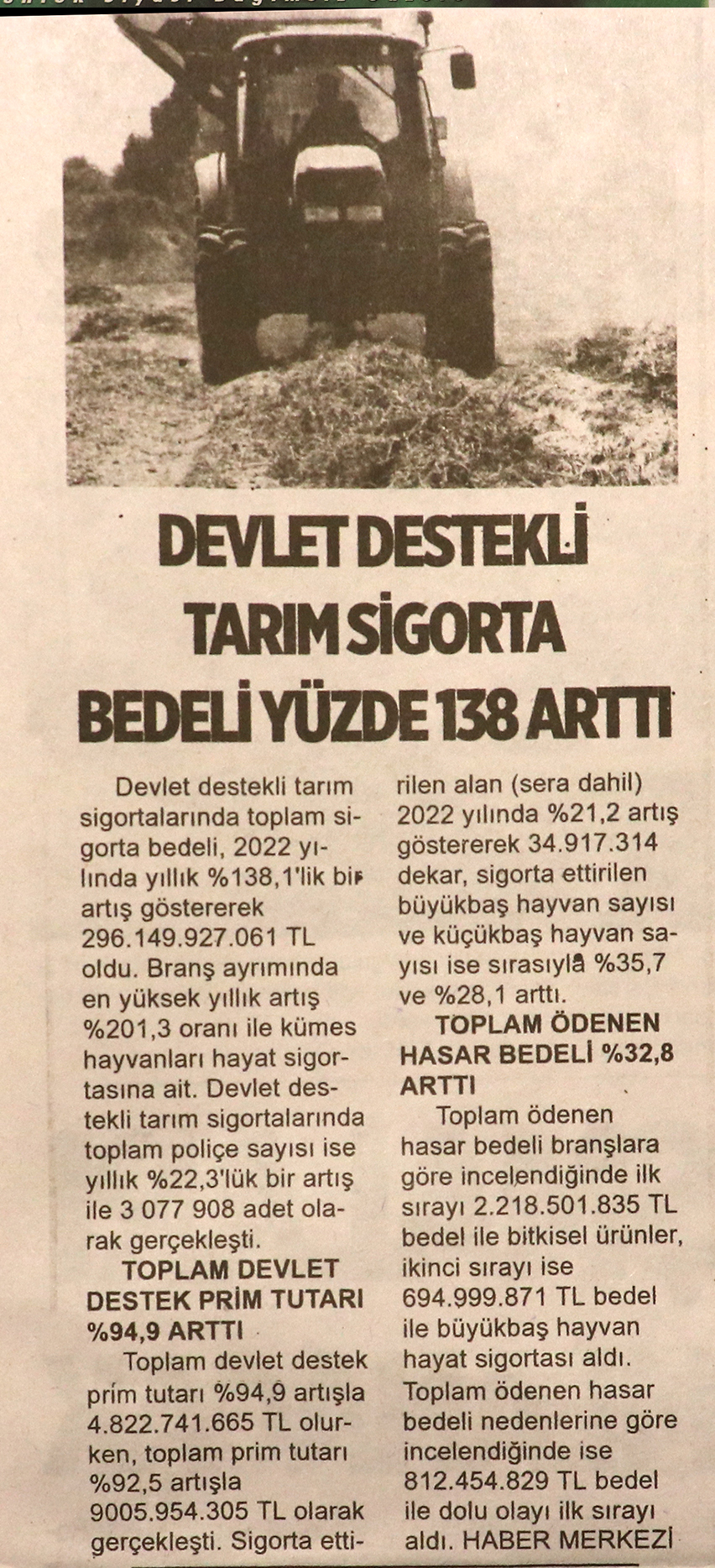 Devlet Destekli Tarım Sigorta Bedeli Yüzde 138 Arttı